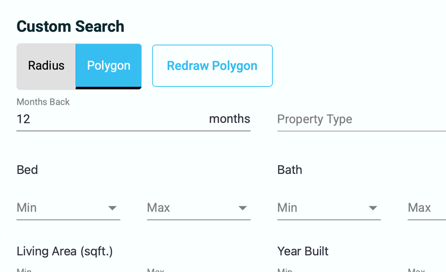 Create your own polygons for market area and parameters for square footage, distance, age, and date of sale.
